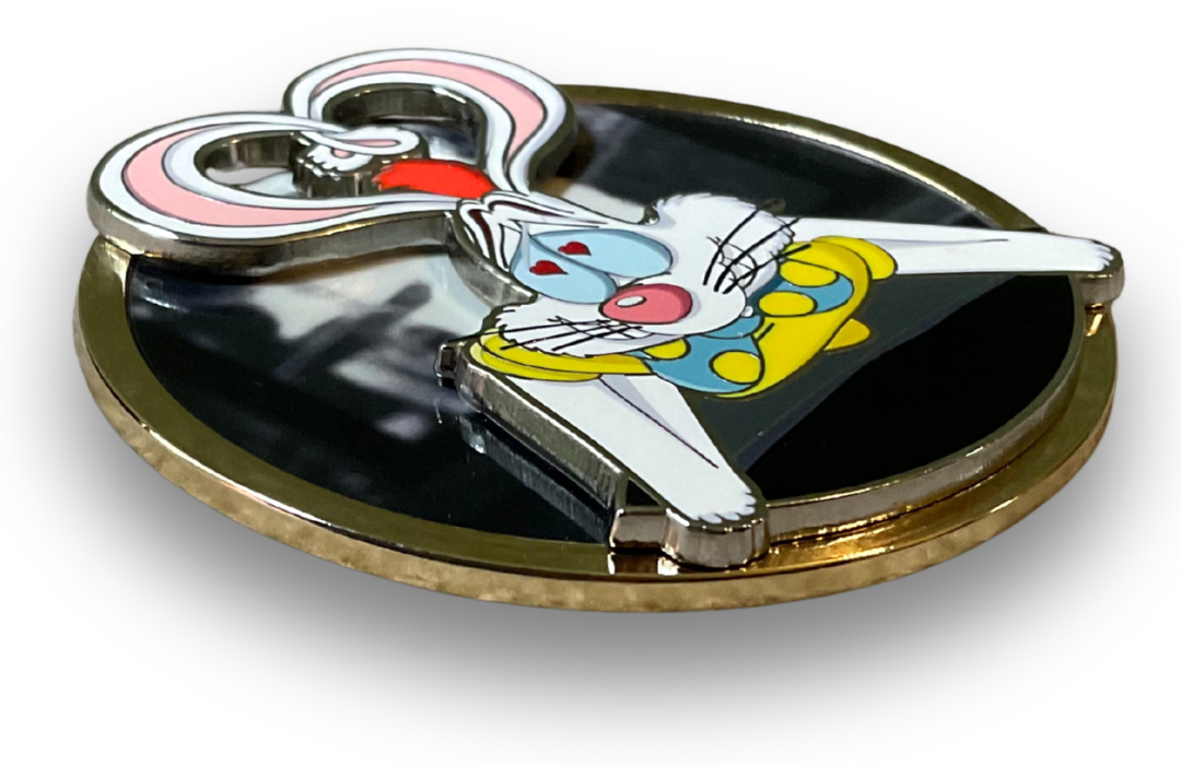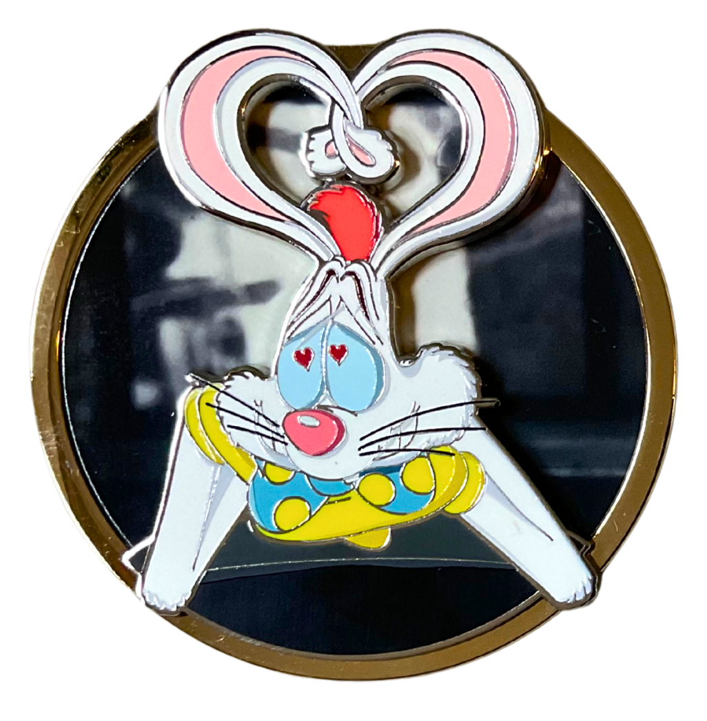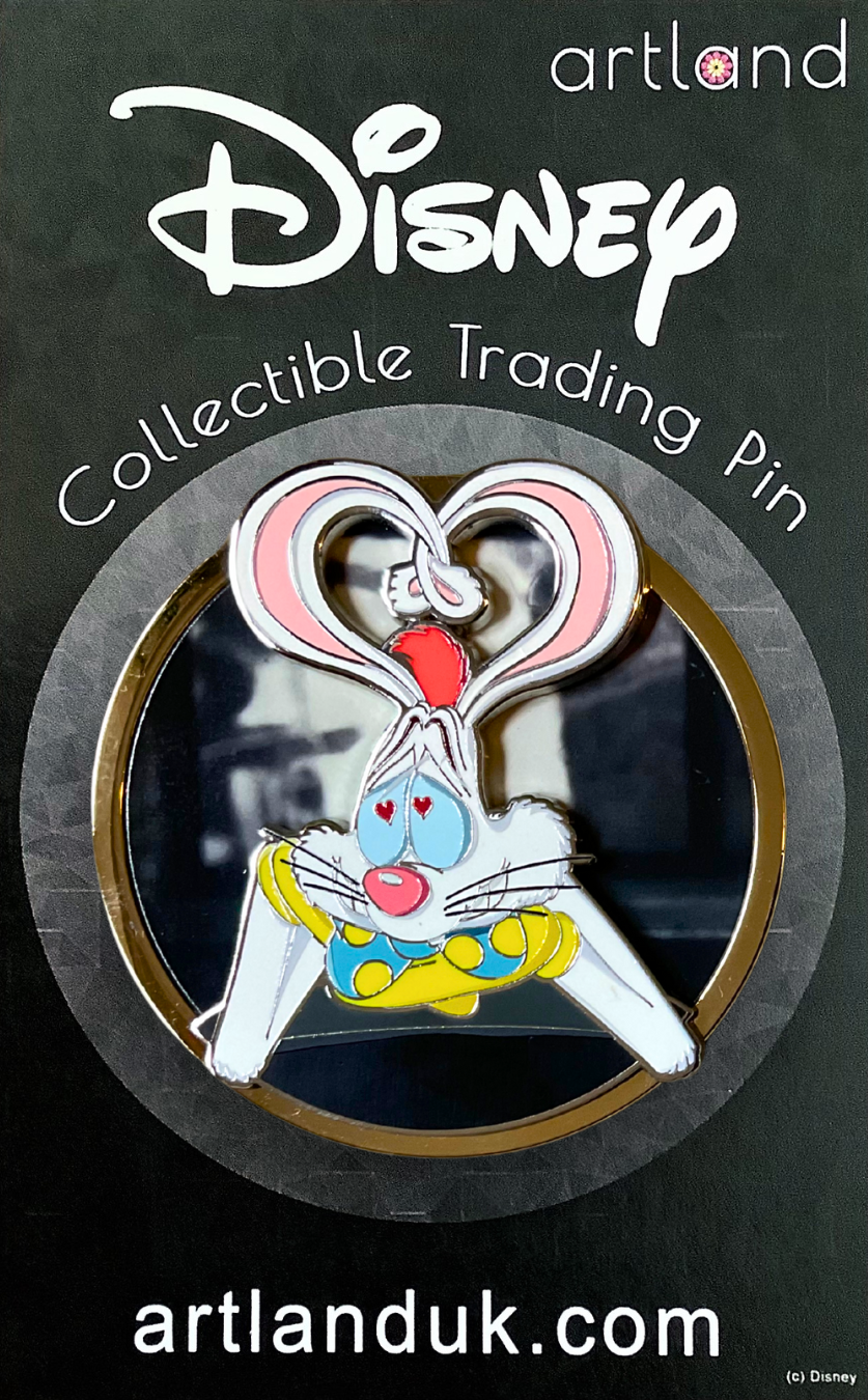 Don't Mind Me Roger in Love features the besotted rabbit himself with hearts in his eyes and ears as a pin layer on top of a black and white classic...