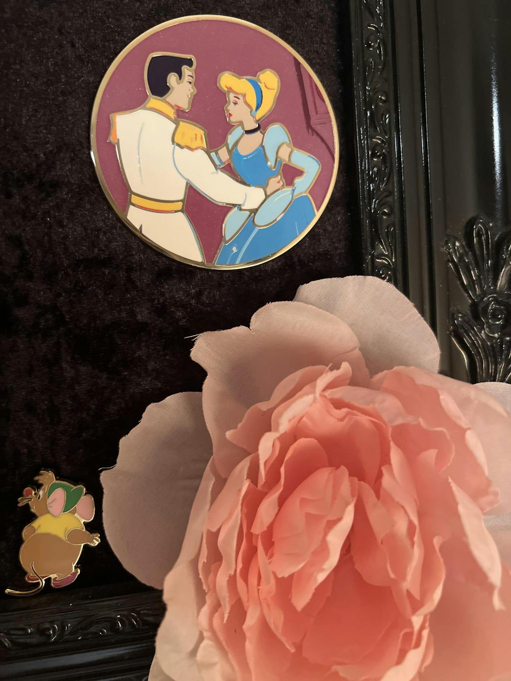 Prince Charming and Cinderella 3 inch round pin is absolutely Magnificent ! This stunning Artland Disney Pin depicts the very Romantic scene from the movie, when Cinderella has her first dance with her Prince Charming. Color is beautiful. Quality Superior, it’s heavy and regarding size, it fills the palm of my hand. I’m so obsessed with this pin, I had to order all of the round pins in this set !