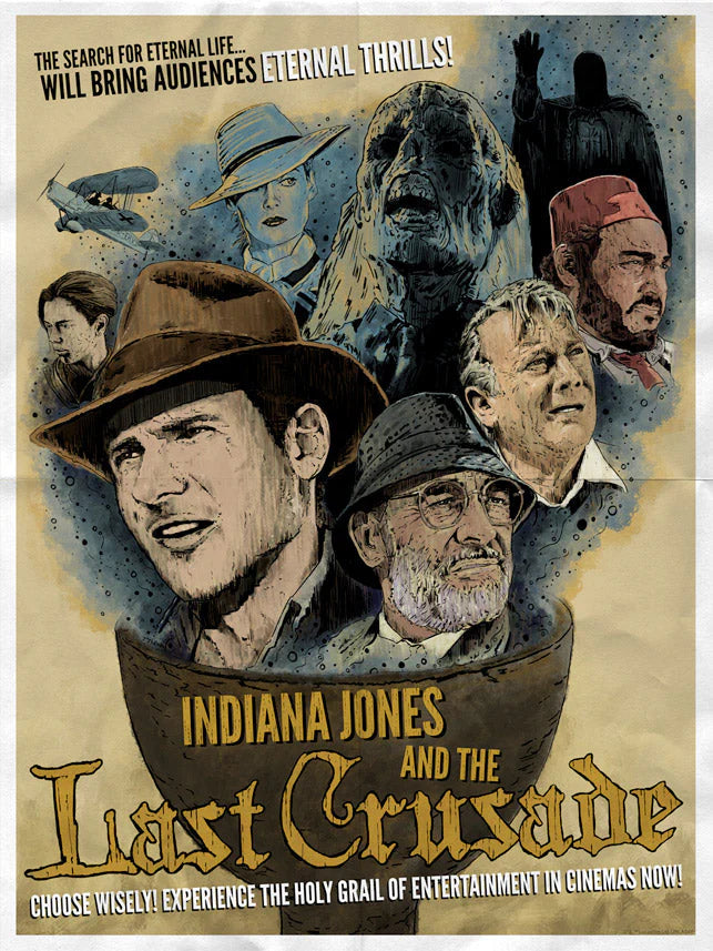 The Last Crusade Artwork inspired by Indiana Jones and the Raiders of the Lost Ark Artist: Mark Dos Santos Edition: 150 piece hand-numbered silkscreen Size: 13" x 19" (paper size), 11.9" x 16.2" (image...